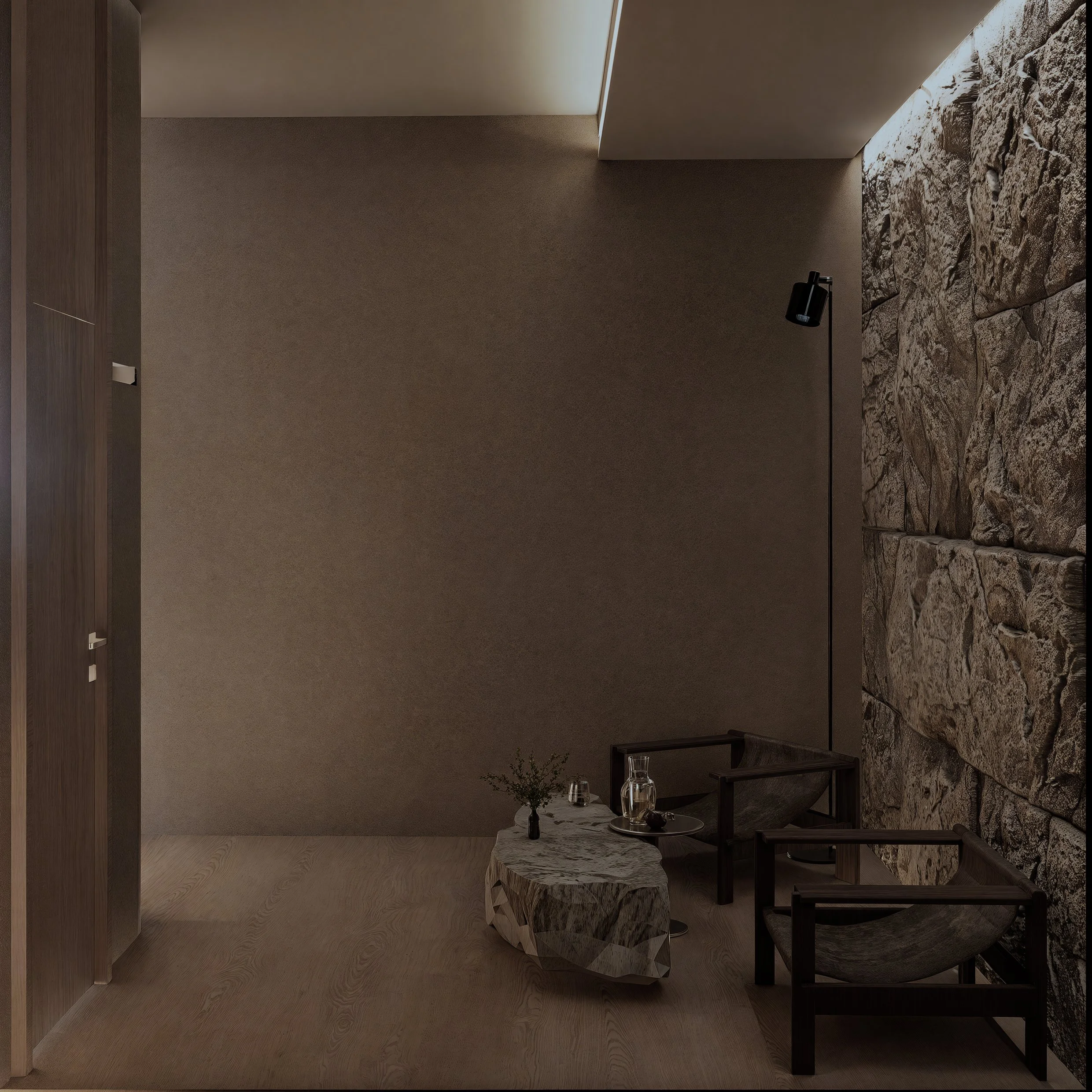 Every element - materials, lighting, textures - works together to create an atmosphere of exclusivity and strength.